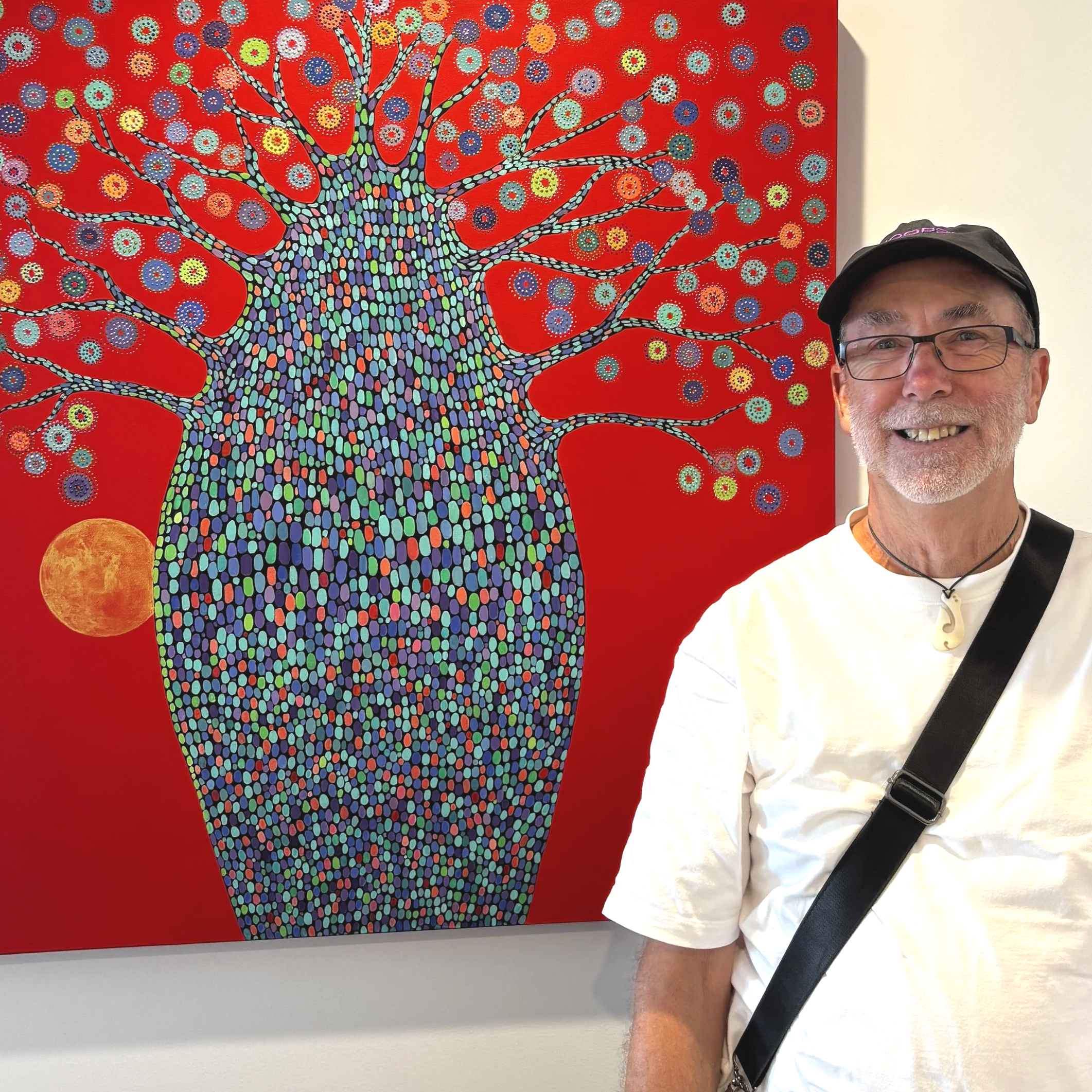 You may have seen Jon Dorne’s Boab Tree in the JOY exhibition at Luminance Gallery for Christmas ‘25. It was an exuberant, joyous, mosaic-like artwork that a couple visiting from Sydney bought and took home with them.