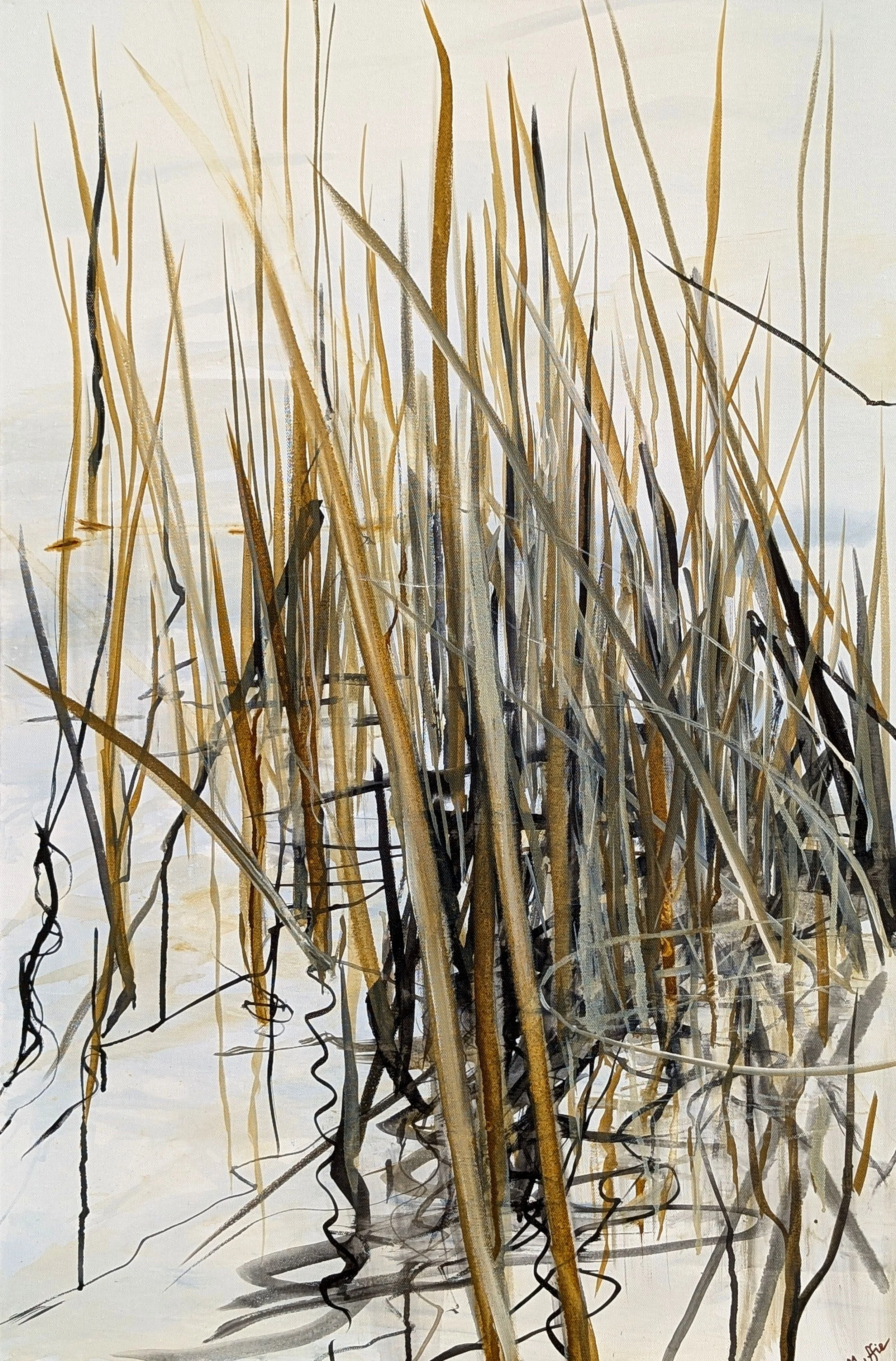 “The quiet ebb of slow-moving water, or the turbulent and sometimes violent rush of a flood. For a landscape artists, it is a gift to hold this ribbon of water and respond to it intuitively.